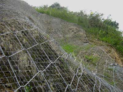 主動(dòng)邊坡防護(hù)網(wǎng)的主要防護(hù)功能有:第一,防護(hù)作用,限制墜石的運(yùn)動(dòng)軌跡,在一定的程度上可以抑制山體的崩塌;第二,坡面加固,主動(dòng)邊坡防護(hù)網(wǎng)的應(yīng)用可以抑制崩塌降低山石的風(fēng)化程度,限制局部或少量落石的運(yùn)動(dòng)范圍;第三,邊坡防護(hù)網(wǎng)在應(yīng)用過程中以柔克剛,避免局部因?yàn)槭盏铰涫臎_擊力而發(fā)生破壞。
