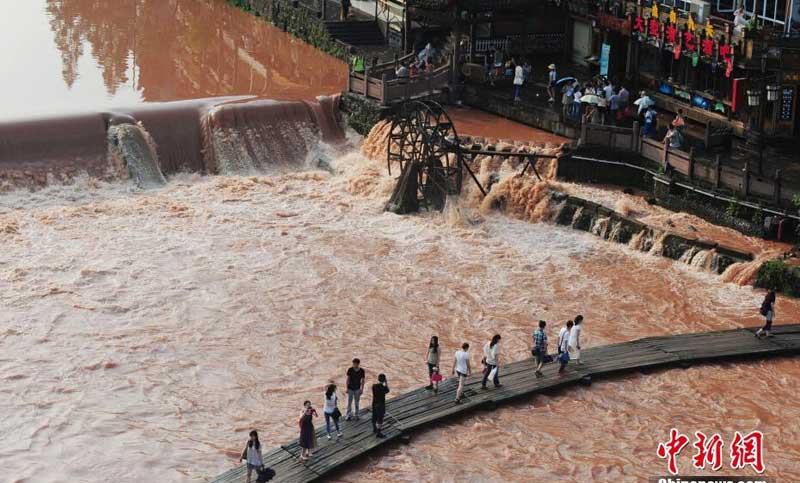 在鳳凰古城的多條高速公路上,都可以看到道路兩側的山體被主動防護網覆蓋,保證高速公路的正常通行。下面我們通過圖片了解一下關于最近一段時間連降暴雨后的鳳凰古城。
